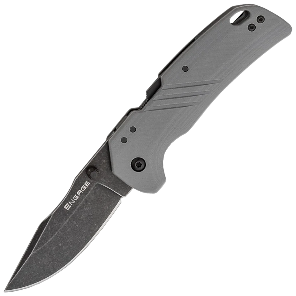 Available in a wide array of blade steels and shapes – and at various price points – Cold Steel's new Engage knives are destined to become everyday carry all-stars. Featuring the patent-pending slide-action Atlas™ Lock that offers durable, strong and reliable lock-up, these premium EDC knives are fully ambidextrous and designed to confidently handle any occasion. This model features a 2.4mm thick 3" clip point blade in AUS10 Stainless steel with a black stonewash finish for a rugged look.