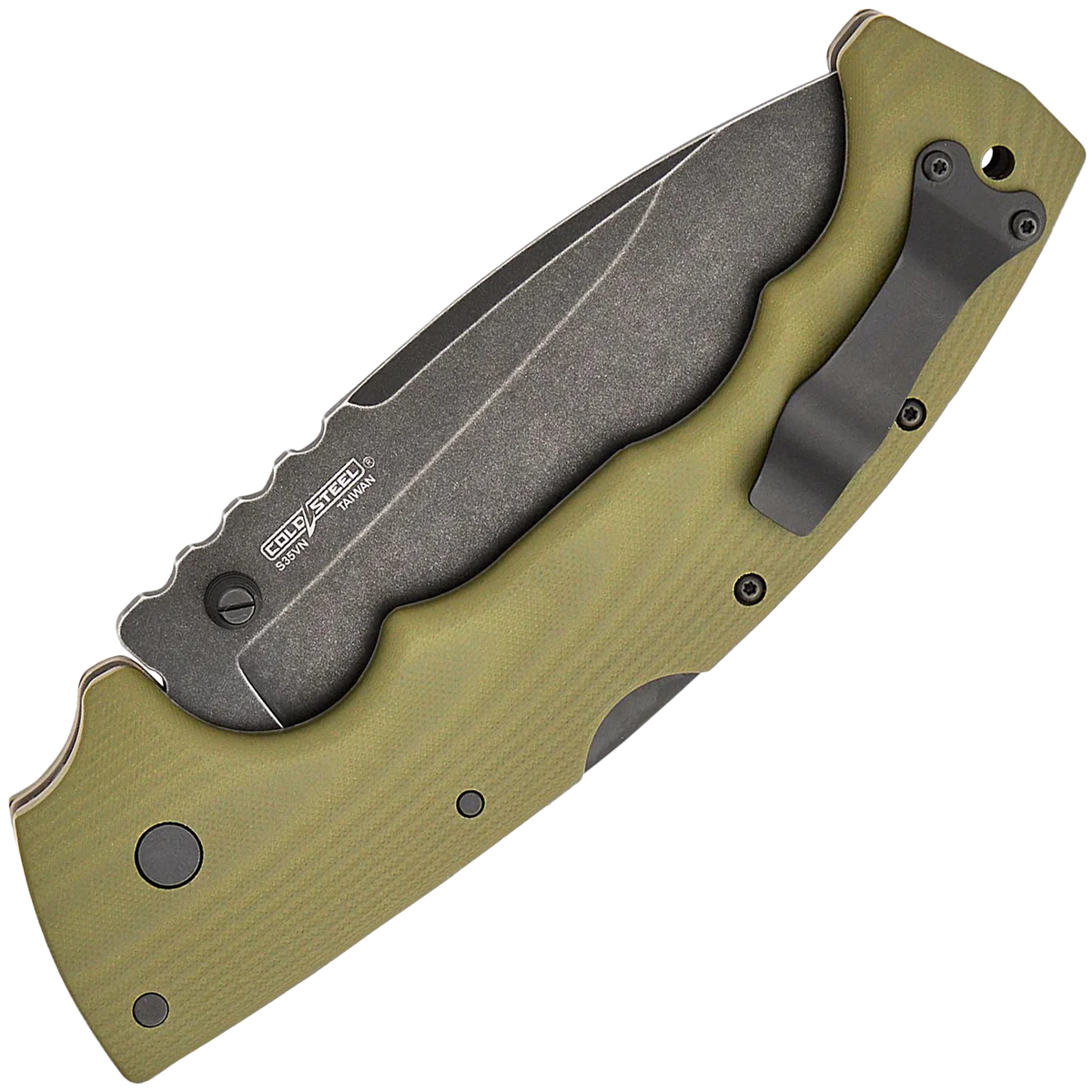 Introducing the Cold Steel 5 Max, the tool you need to unleash your inner adventurer! Based on the best selling 4 Max, now with a longer blade and reach. Crafted in collaboration with knife designer Andrew Demko, renowned for crafting some of the finest, most durable knives worldwide, this folder boasts a formidable, razor-sharp 5-inch blade forged from high-quality S35VN steel. This premium material ensures exceptional edge retention and incredible corrosion resistance that easily stands up to years of action. Plus, the blade’s black stonewashed finish makes it even more durable, adding a touch of sophistication for the perfect blend of style and substance. Attached is a dark green, ergonomically designed G10 handle that delivers excellent traction for a solid hold, even when working in the most challenging outdoor conditions. Equipped with Cold Steel’s renowned Tri-Ad Lock, you can trust your blade will stay securely in place during use, providing you with peace of mind and superior, worry-free performance when you need it most.