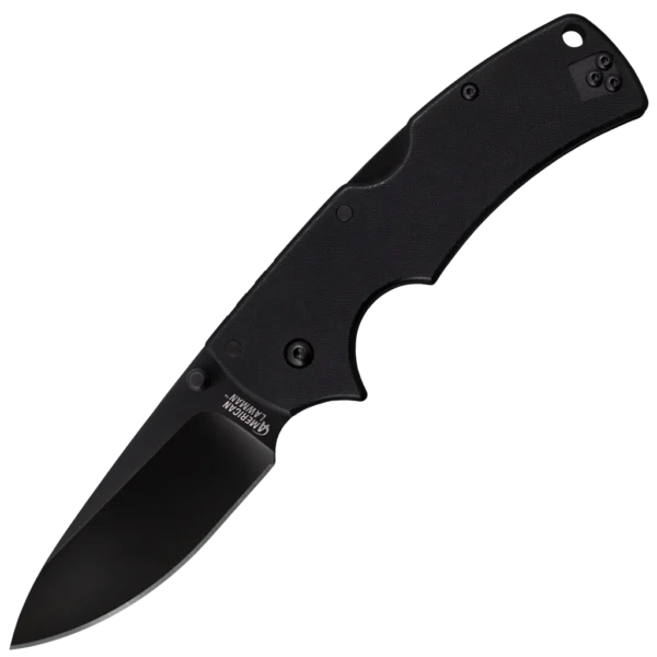 - Folding knife made from S35VN stainless steel with a DLC finish in a drop point style. Black G10 handle with a reversible pocket clip and a lanyard hole! Uses Cold Steel's Tri-Ad locking mechanism.