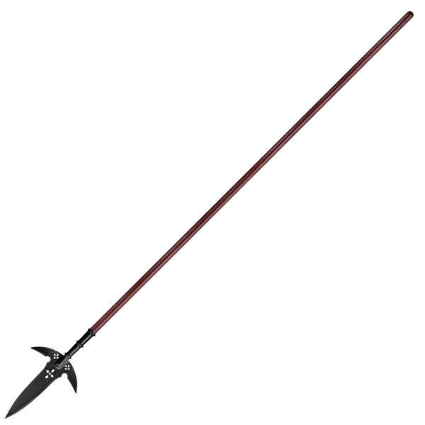 The spontoon is basically a scaled-down polearm or winged spear that often served as a substitute for a rifle or musket in colonial America. Issued in substantial quantity by both sides from the French and Indian war (1754-1763) to the War of 1812 it was historically carried as both a weapon and a badge of rank or authority by commissioned and noncommissioned officers alike. Cold Steel President Lynn C. Thompson became fascinated by the spontoon after reading Tim Willocks' novel the Twelve Children of Paris (3 times!) so they decided to make their own model based on historical examples. The blade of this spontoon is 10.5" long and 4 mm thick with 3.5" wings on either side. Mounted on a stout ash wood pole with a decorative 3-ring socket its appropriate for any Colonial reenacting.