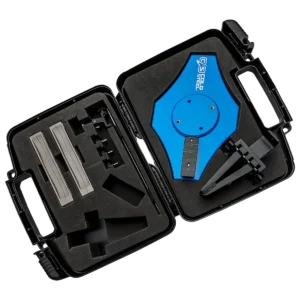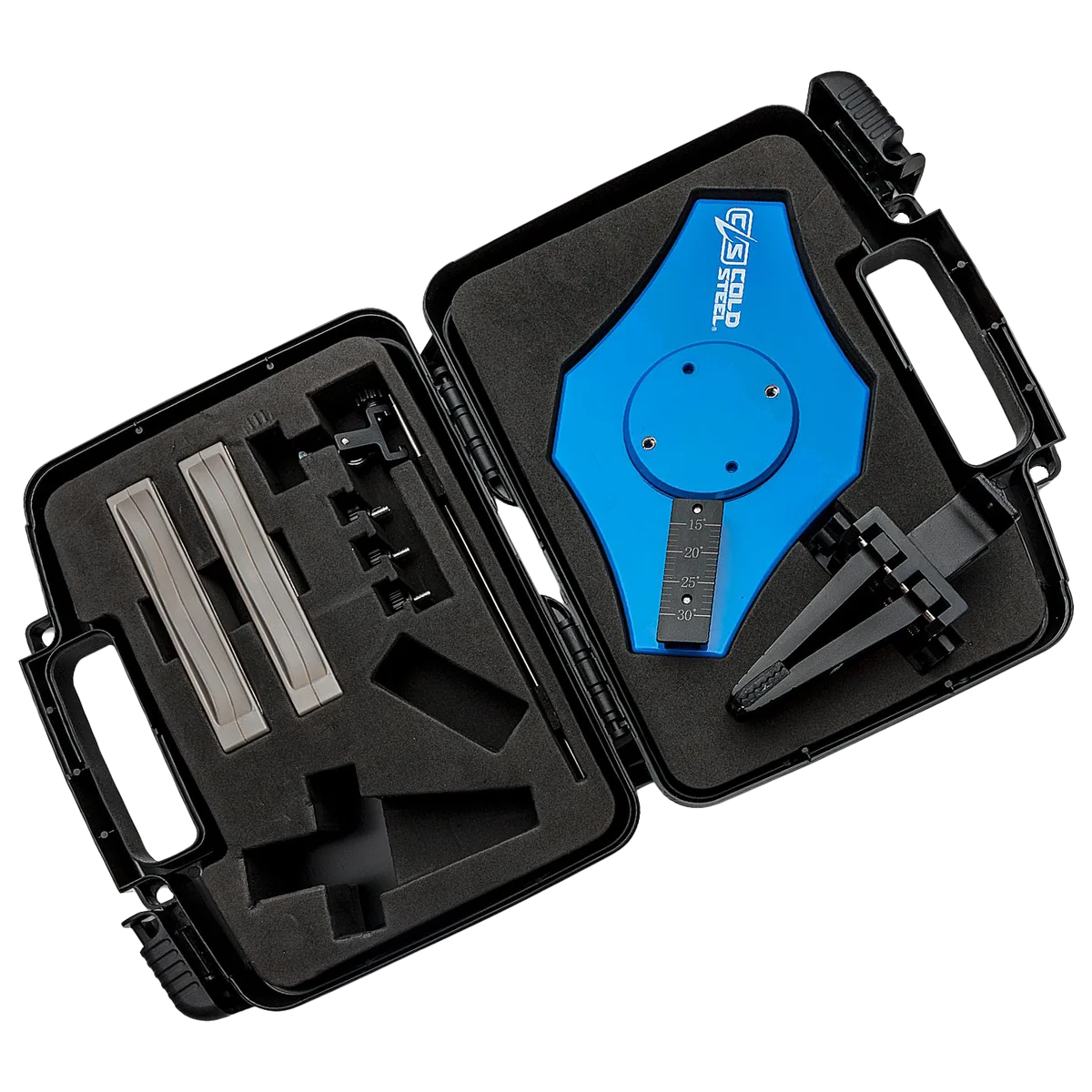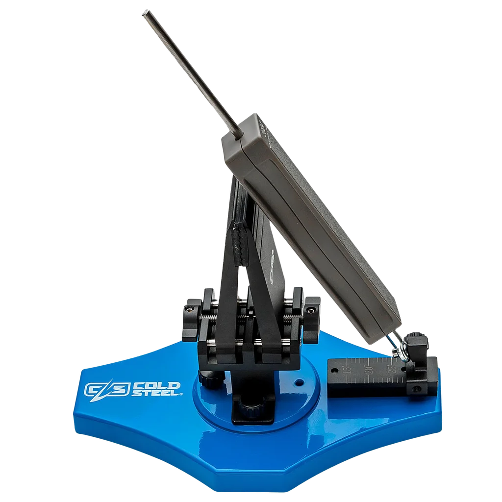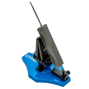 The Benchtop Sharpener is angle adjustable from 15 to 30 degrees, and it comes with 4 diamond sharpening grits (300, 600, 800 & 1000). It can quickly restore a sharp edge to virtually every knife you own. It has an ambidextrous clamp with a nonmarring grip and 180 degree rotation for sharpening two edges without removing the knife from the clamp. The base is weighted with non-slip feet providing a stable pedestal for benchtop sharpening.