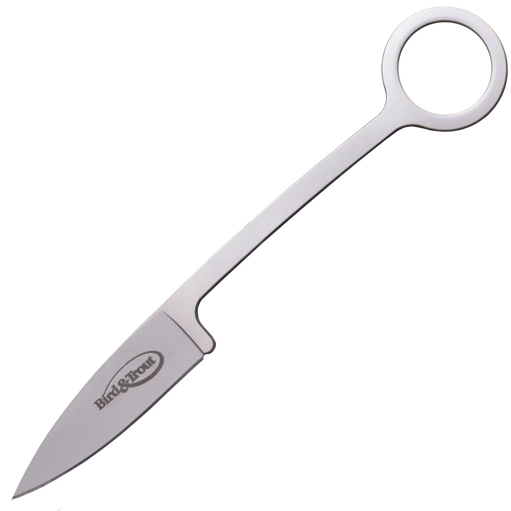 The Bird & Trout Knife is a modern version of a 100 year old classic, treasured by hunters and fishermen for generations. The secret to its enduring popularity is its ultra slim profile, and unique all steel construction. The skeletonized handle offers great versatility and freedom of movement. It's perfect for working in tight places or making precise cuts. The ring allows the knife to hang from the little finger when not in use and yet remain instantly available.