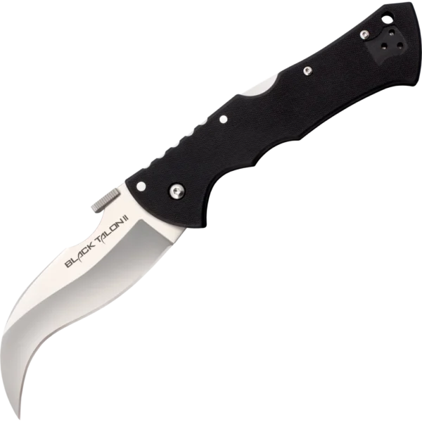 Our fans have been clamoring for us to bring back this classic and iconic blade, and now we are proud to announce a newly re-designed knife that we have christened the Black Talon II! A design collaboration between Cold Steel President Lynn C Thompson and custom knife-maker Andrew Demko, the Black Talon II is a modern masterpiece! It's sinuously curved, needle sharp blade still features the distinctive down-swept point and pronounced belly of the original, but with all new high end American S35VN super-steel and a re-designed tip for additional strength and durability. The textured premium G10 scales offer maximum retention and grip even in cold or wet conditions while still being kind on your clothing when drawn from the pocket. The contrast between the deep black of the scales and the exquisite rich satin polished blade further emphasize the flair and style of this good-looking and elegant folder. Featuring our high performance Tri-Ad locking mechanism for added safety and strength, this thin, lightweight and eye-catching knife is sure to be the talking point of anyone's collection!