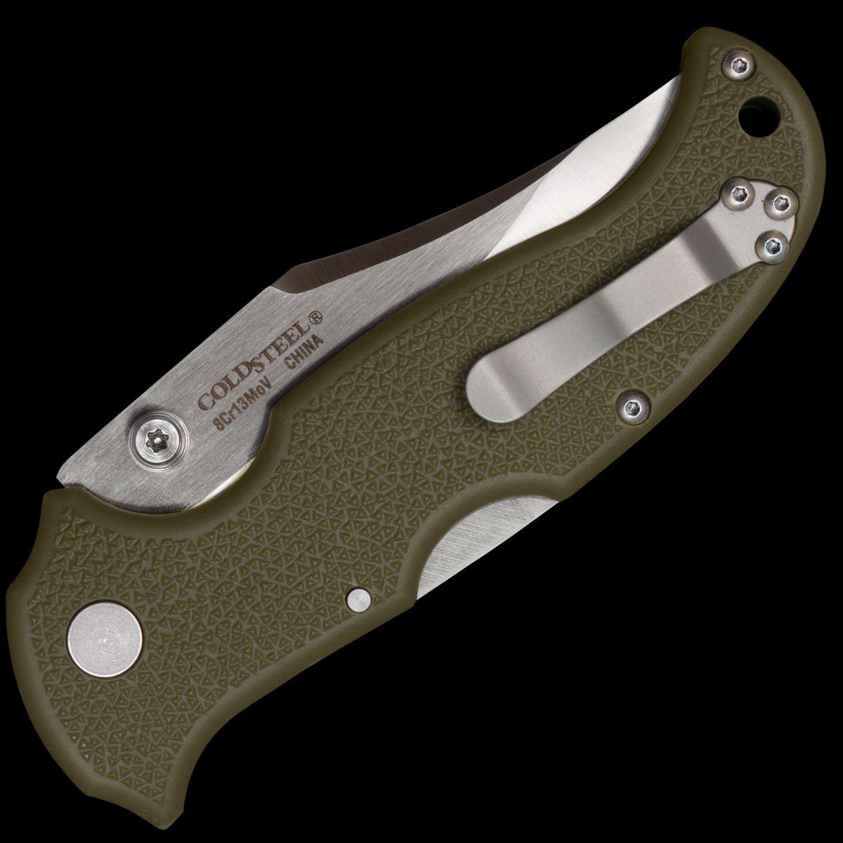For those intrigued by the Bush Ranger but seeking a budget-friendly folding field knife, Mike Wallace developed the Bush Ranger Lite. With an almost identical 3 1/2” Sheffield clip point blade, the Lite version of the Bush Ranger utilizes durable 8Cr13MoV steel and a thumb stud for ease of opening. As comfort in use is key, the Bush Ranger Lite’s handle is comprised of expertly contoured glass filled nylon (GFN) that fits your hand like a glove. With ambidextrous carry options offered through an interchangeable pocket clip, and weighing just 4.8 ounces, the Bush Ranger Lite makes carrying a breeze. As always, safety and security continue to remain priority number one to Cold Steel, so we supplied the Bush Ranger Lite with a state-of-the-art rocker lock featuring a secondary safety that when engaged is enormously resistant to shock and impact. We’re confident you’ll agree, the Bush Ranger Lite is an excellent first folding knife or budget-friendly, reliable utility knife for everyday carry (EDC).