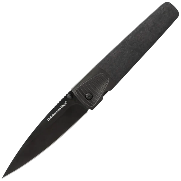 One of three folding-style knives making up the all-new 60 Series, the Caledonian’s 4.25-inch, spear-point blade is forged from 20CV steel and perfectly symmetrical from end to end. At a sleek 3.8mm thick, the blade features a quick-to-sharpen hollow grind—favoured by outdoor users for its durability and edge retention—with a matte black PVD finish and is easily deployed using the ample no-slip thumb stud. Attached to the blade is a forged carbon-fiber handle that offers a palm-hugging profile and relatively thin cross-section to enhance its compact, portable design—blending strength, durability and aesthetics. When deployed, the integrated liner lock provides a secure hold, allowing you to work safely and confidently on the task at hand.