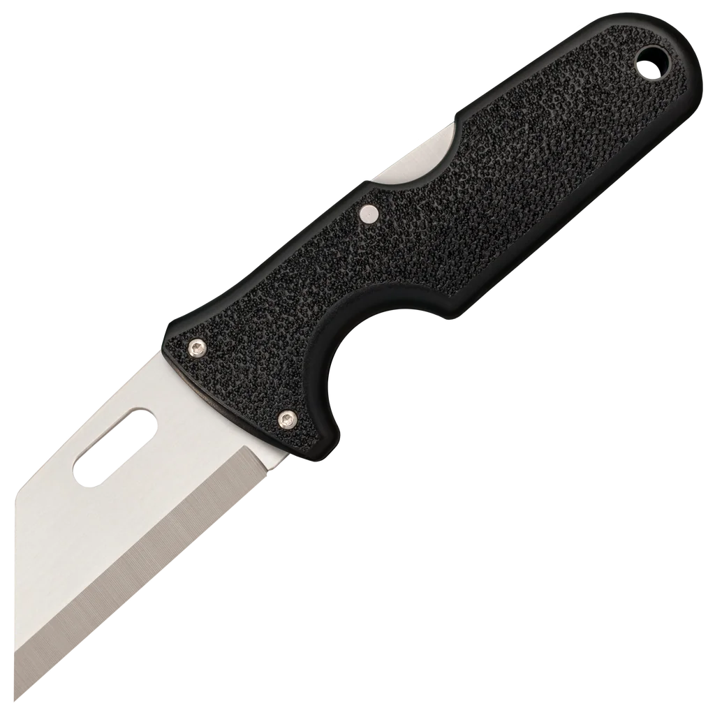 - Fixed blade made from 420J2 stainless steel with a satin finish in a utility and drop point stlye. Black ABS handle wih Tri-Ad locking mechanism, comes with 3 interchangeable blades and a secure-ex sheath
