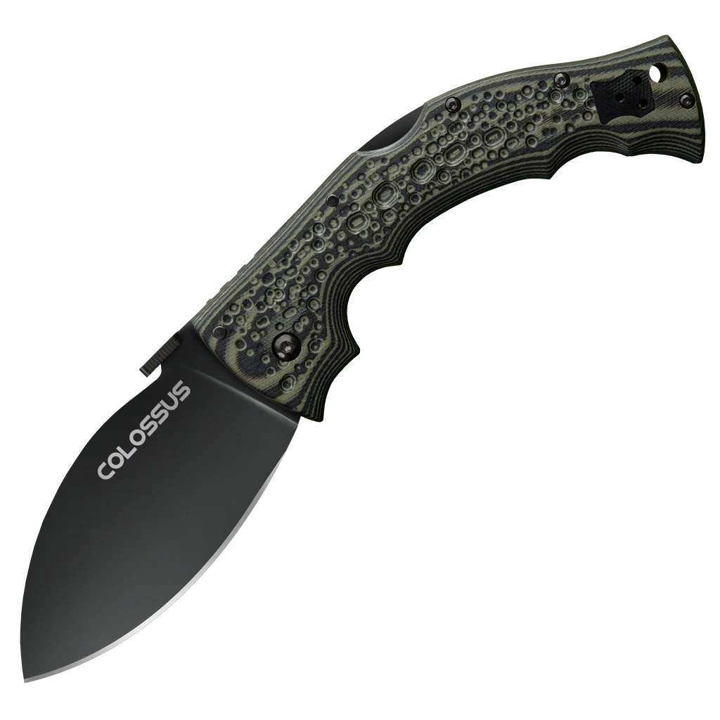 The Cold Steel Colossus is a powerful folding knife designed to take on whatever you throw at it. The big-bellied blade glides through tasks with effortless precision, while the action is as smooth as it is satisfying. The 3D CNC machined textured, and stippled two-tone American G10 handle is not only incredibly comfortable both in the hand and in the pocket, but it also houses what is arguably the strongest lock in the industry!