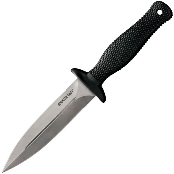 Good design endures. The Cold Steel Tantos, Trail Master, and Voyagers illustrate this. The Counter TAC I boot knives were designed with this philosophy in mind. The full tang blades are made from beautifully stonewashed AUS-8 stainless steel that is vacuum heat treated and sub-zero quenched for strength. They are hollow ground and finish in a sturdy point for precise control; the edge is finely honed. The ergonomic Kray-Ex grip is comfortable and adaptable, and the deeply textured surface and double guard help reduce slippage during use. Each Counter TAC I is supplied with a Secure-Ex sheath, complete with a removable boot/belt clip and lashing slots.
