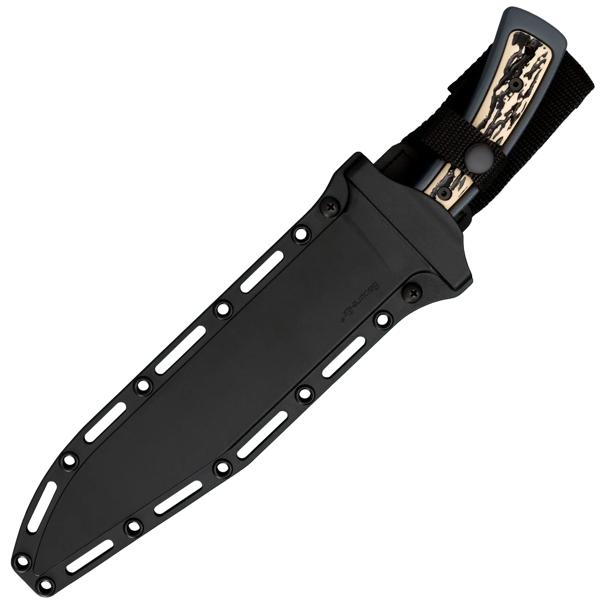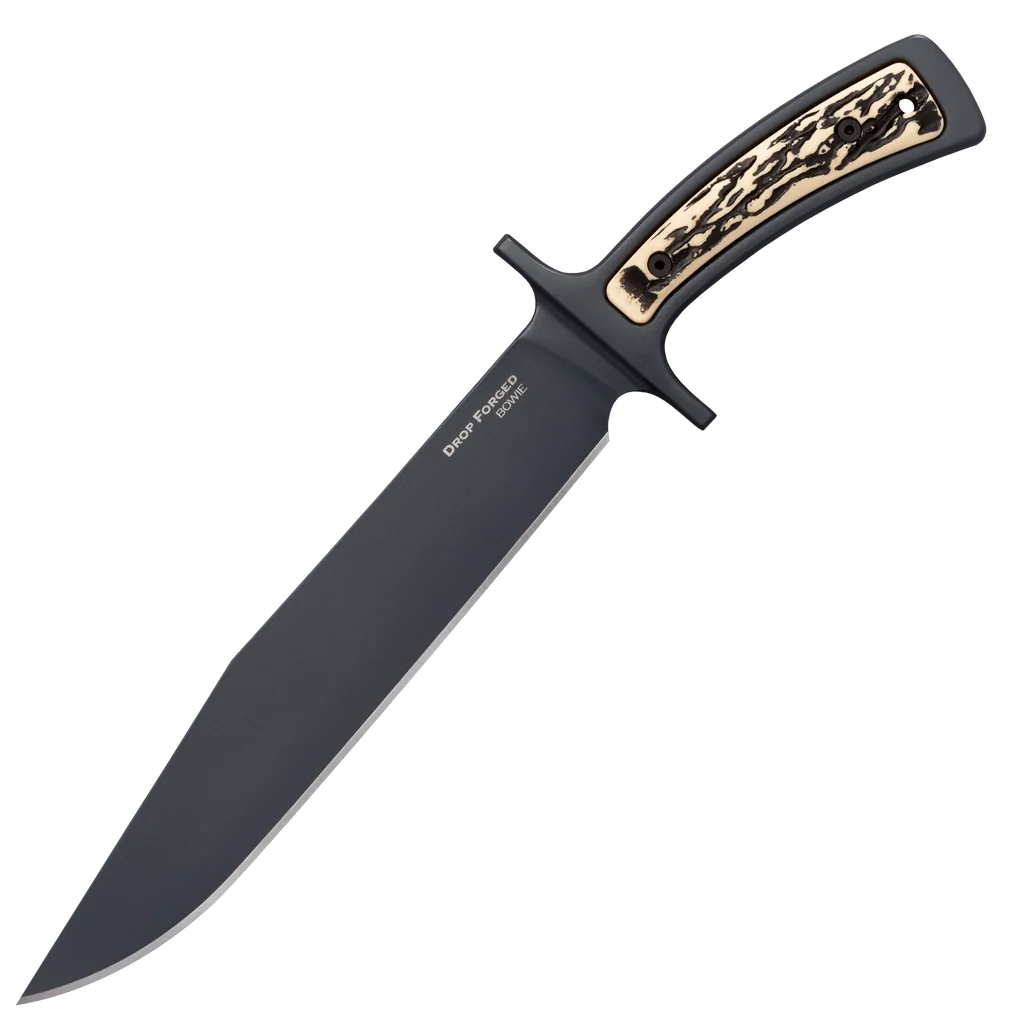 This addition to our Drop Forged line of knives has total length of 14 inches and features a 9 ½ inch blade, it shares many of the same attributes of the other knives in the series, including the same robust construction, being forged as a single piece of steel, giving it a startling amount of strength. But, unlike the other Drop Forged knives, it has distinctive faux stag slabs incorporated into the handle. The blade is flat ground to a moderately thin edge and is then honed to razor sharpness. Like the other knives in the Drop Forged Series, it comes with a military grade, SecureEx™ sheath that includes a detachable Cordura belt loop.