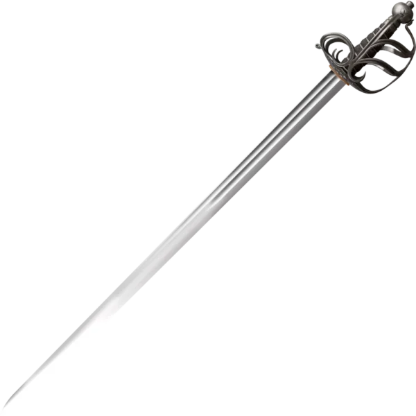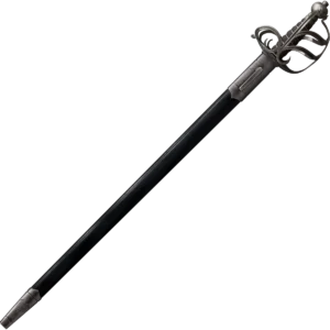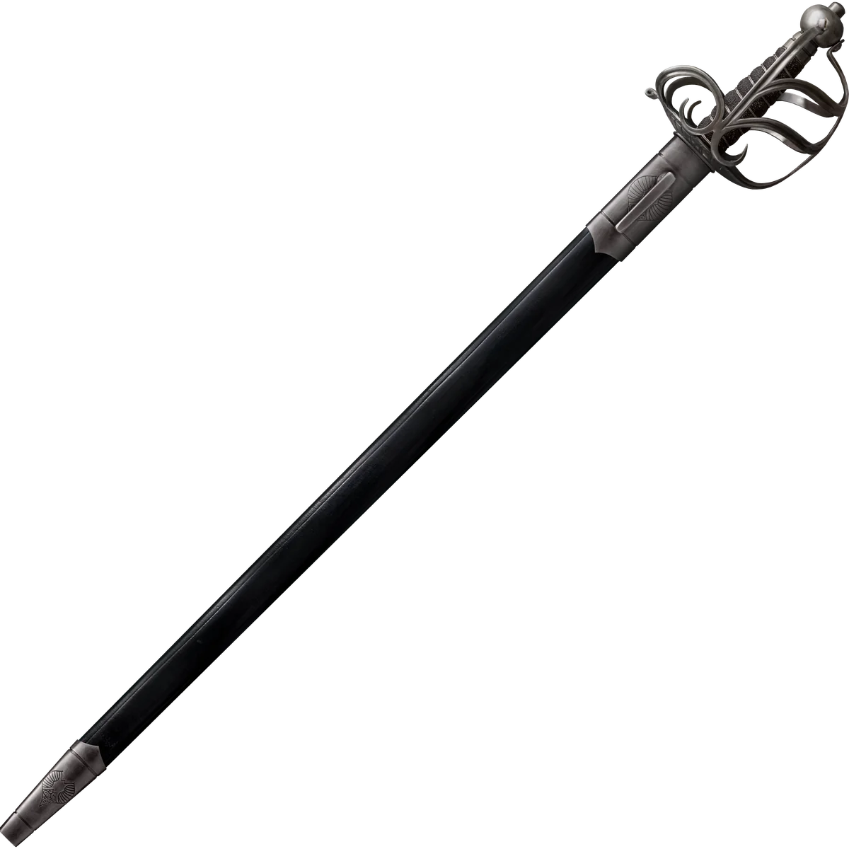 Inspired by historical examples, this nimble single-handed sword is fast and lively in the hand and a sheer delight to train with. Able to land a decisive blow even when cutting fast from the wrist, this beautiful sword has already proven to be very popular among Cold Steel's crew, who have proclaimed it to be one of their favorite one handed cutters. Made from 1055 Carbon Steel and supplied with a mild patina to give an "antiqued" finish, each English Back Sword is fully sharpened and supplied complete with an ornate leather and steel scabbard.