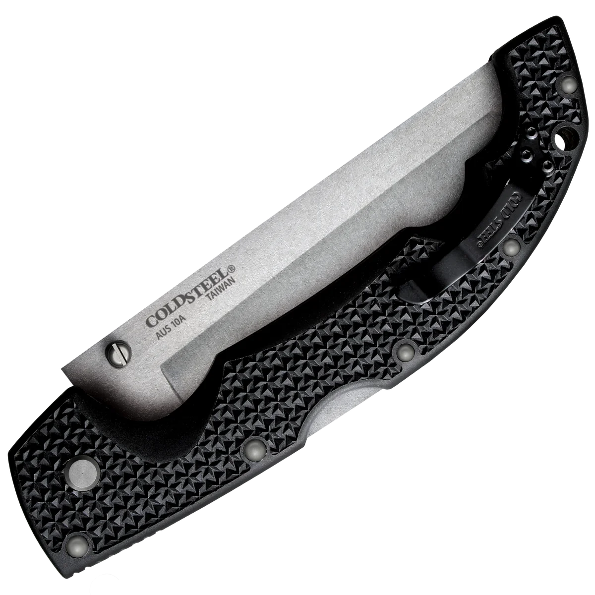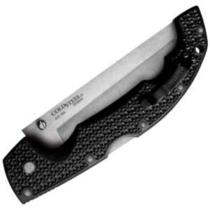 - Folding knife made from AUS-10A Stainless Steel with a stonewash finish in a tanto style. Black Griv-Ex handle with a lanyard hole and reversible pocket clip. Uses the Tri-Ad locking mechanism.