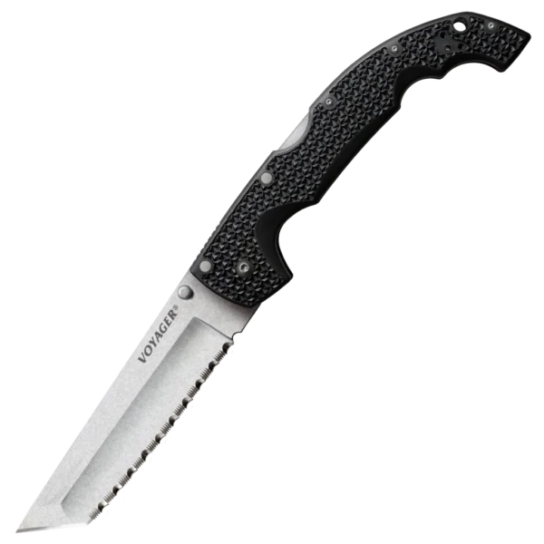 The Cold Steel Voyager series is designed to be the true 'everyman' knife. Lightweight, comfortable and super sharp, they are rugged, dependable and well suited to camping, bushcraft and general outdoor utility and daily cutting chores. Voyagers perform well in survival and rescue situations and have proven popular with police and military personnel, who appreciate their cutting performance and safety. Each knife in the Voyager series is precision engineered and held to exacting standards. The Voyager series features Japanese AUS10A alloy blades and the Tri-Ad locking mechanism — a secure, safe and shock-resistant lock. The Voyager’s ergonomic Griv-Ex handles (reinforced with heat-treated 6061 aluminium liners) provide both comfort and a secure grip even under extended use in tough conditions. Available in two sizes and with numerous blade and edge configurations, there’s a Voyager for everyone.