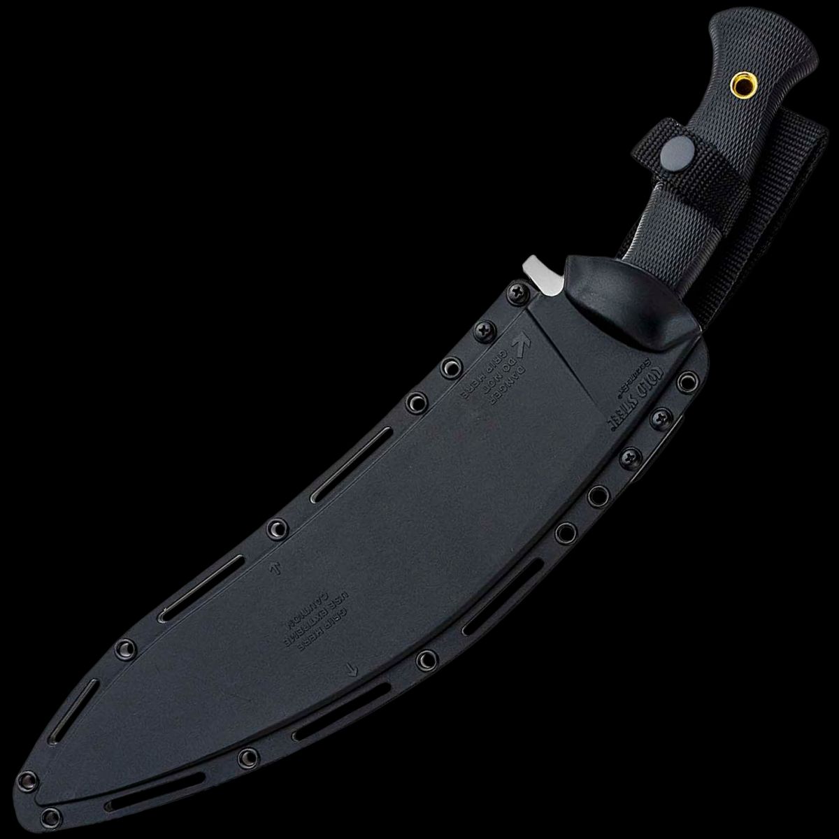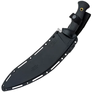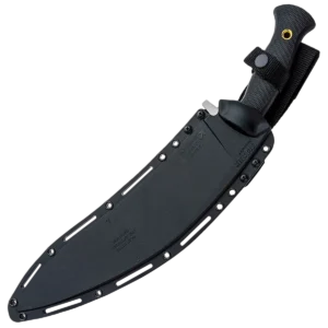 The Kukri blade, with its markedly downward curved blade, has long been identified with the Gurkha Warriors of Nepal, who have wielded this blade for over 150 years in the service of the British Empire. The Cold Steel Gurkha Kukri was inspired by Cold Steel President, Lynn C. Thompson's close association with Dr. Maung Gyi, chief instructor of the American Bando Association, and a renowned martial artist with wide-ranging knowledge and skills. Under Dr. Gyi's tutelage, Lynn gained insight into the full potential of the Kukri. With Dr. Gyi's input, Thompson designed a longer, narrower point for the Gurkha Kukri with more distal tapering to the spine. This resulted in a thinner, sharper point. Finally, a masterfully designed Kraton handle was added to maximize the blade's potential. Perfectly contoured and deeply checkered, it offers a superb non-slip grip and cushions the hand. Each Gurkha Kukri Machete is supplied with a Secure-Ex sheath to protect the blade and allow you to wear it safely and securely.