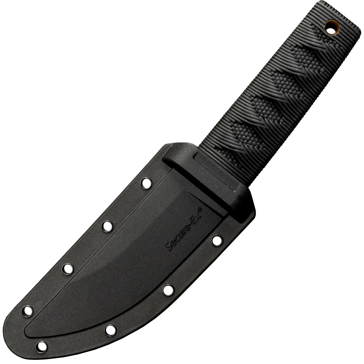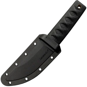 Available in with traditional and reinforced point blade styles, they offer astounding cutting potential that belies their modest stature. The robustly stout blades have wide, full tangs that run the full length of the handle. They are coupled with stainless steel guards and super high traction Kray-Ex™ handles that are stylized to mimic the traditional look of cord wrapped Japanese sword handles. The slim, comfortable sheath is versatile and will accept a bead chain lanyard, or a Cold Steel® C-Clip, so it can be carried in a variety of ways.