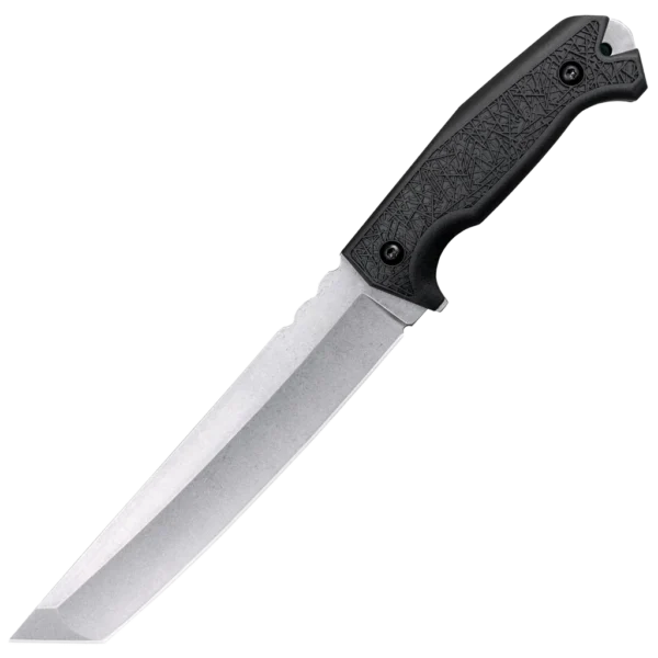 When it comes to modern knives, Cold Steel® is implementing its latest design concepts with the Tanto collection, the blades are significantly thicker than many other commercially available models. With their robust, reinforced tips, elegantly curved cutting edges and stable one-piece construction, they offer unprecedented performance. Each blade has a flat-ground primary cutting edge and a secondary bevel with a chisel grind . Both have been finely ground by hand and are incredibly sharp. The ridge line between these two bevels (Yokote) forms an extremely effective tip. The strong full tang is lined with two GFN grips, ensuring a comfortable, secure hold. A dependable workhorse knife – It is available in three different sizes and is probably one of the best fixed blade knives in the world today. A Secure-Ex® sheath is included.
