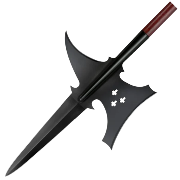 The Sergeant's Halberd is often seen as a ceremonial item, carried as a badge of rank by officers and NCOs alike in the 18th and 19th Century, it was a much feared weapon of war as well. Unlike its heavy-duty brethren (see Swiss Halberd) the Sergeant's Halberd was actually developed during the age of firearms and was designed to face foes with less protective armor.