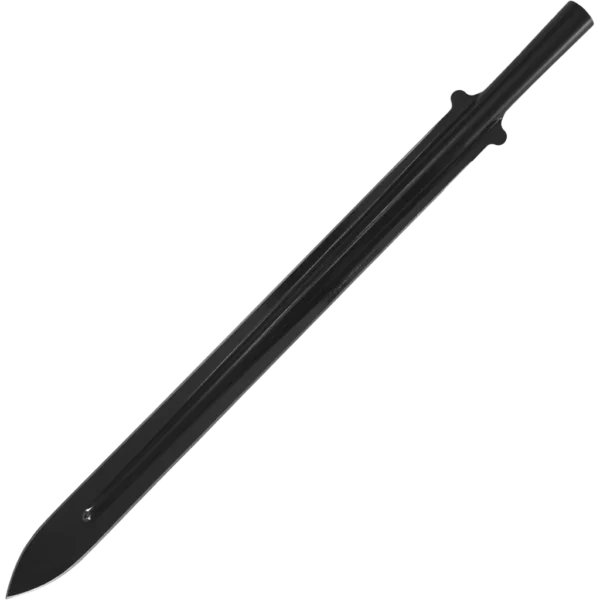 This fabled implement of the mature Maasai Moran or warrior is one of the most distinctive spears in the world with its long, narrow blade, short wooden handle and heavy counterbalancing butt spike or shoe. The spear is a warrior's most precious possession and never leaves his hand except to rest point up in the earth at his side. Each spear is carefully cold-forged from high carbon steel and combined with a stout ash wood handle and sturdy counterbalancing spike. When fully assembled, it measures 6 ft long and weighs 3 lbs 2 ounces! Delivered unassembled, the razor-sharp Maasai spear consists of three parts: First the blade itself measures 22" long by 2" wide and is forged with a thick reinforcing rib that runs down the center almost to the very tip. Second is the brown American ash shaft with a double taper which fits into twin sockets connecting butt and blade. Third is the heavy solid steel butt spike that is also heat-treated to a hard spring temper. The Maasai spear includes an injection-molded sheath to help protect you from unwanted contact with the razor-sharp edge or point.