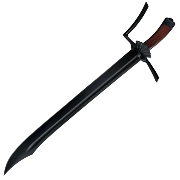 Designed by Luke LaFontaine and Dave Baker, Cold Steel’s one-handed Messer is a sword that just has to be held to be appreciated! This modern interpretation of the historical German Langes Messer (or Long Knife) is beautifully balanced and a joy to use. Thinner and lighter than many of Cold Steel's current offerings, it handles almost like a giant Bowie knife! Its clip-point style blade is fully sharpened on the primary edge, with an un-sharpened “false edge” terminating in a sturdy upswept point. The Messer’s stylish and functional cross-guard, knuckle bow and pronounced shell-shaped "Nagel" are also blued to match the blade and enhance the rich brown of the rosewood handle scales.