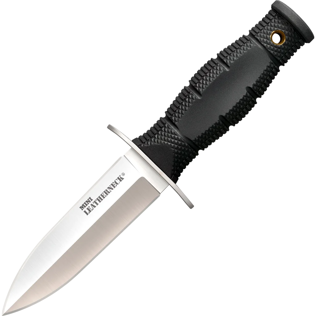 Made from 8Cr13MoV steel and offered in three blade styles, each of the Mini Leatherneck Series features a stainless steel guard with broad quillons to protect your fingers. The grip is made from Kray-Ex™ and is dssigned to be reminiscent of our larger Leatherneck models.These knives come with a tough, sturdy Secure-Ex™ sheath that will accommodate a bead lanyard or a Cold Steel® C-Clip. Best of all they are economically priced.