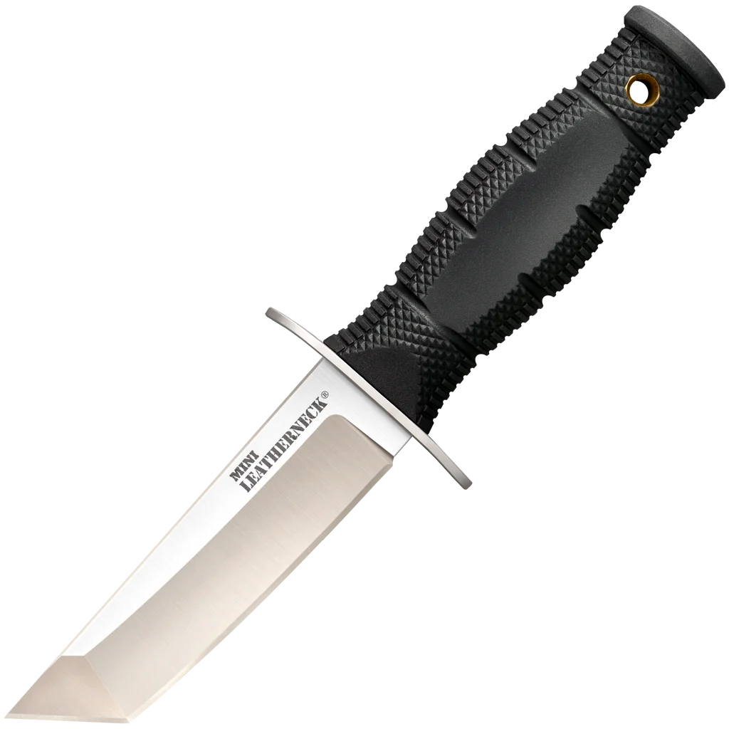 Made from 8Cr13MoV steel and offered in three blade styles, each of the Mini Leatherneck Series features a stainless steel guard with broad quillons to protect your fingers. The grip is made from Kray-Ex™ and is dssigned to be reminiscent of our larger Leatherneck models.These knives come with a tough, sturdy Secure-Ex™ sheath that will accommodate a bead lanyard or a Cold Steel® C-Clip. Best of all they are economically priced.