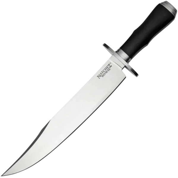 The Natchez Bowie was born “Under-The-Hill” and takes its pedigree from those seedy taverns and dimly lit streets. Its long blade is perfectly shaped for strength, reach and leverage, and its significant heft is flawlessly balanced, giving it unparalleled liveliness and velocity. The very best in materials and workmanship is what makes performance like this possible. The blade is made of 3V Carbon Steel, resulting in a blade that is virtually indestructible. The handle also plays a big role in the overall performance. It has a double quillion guard, bolster, and pommel made of highly polished steel and a gorgeous black polished Micarta handle. It will easily accommodate a wide variety of gripping methods while serving as a very formidable impact tool as well.