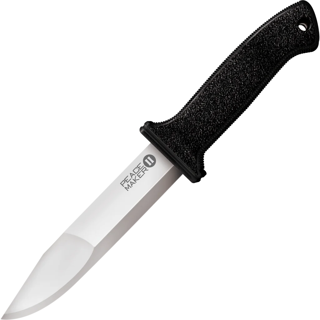 Astoundingly light and thin – the largest model, with it's 5 1/2"" blade weighs a paltry 4.7 ounces and measures less than 1/2 inch at its thickest point. The Peace Maker's ""Scandi"" ground blade bevel makes them very easy to resharpen, while the unique compound ground clip point -provides a very stiff, distal tapered point. The Peace Makers offer a versatile spectrum of uses so it's fitting that they also have a versatile grip. They feature a thin rectangular handle with subtle contouring and pronounced palm swell. A double quillon guard protects your precious fingers, while a thumb trough in the butt further enhances the knife's versatility by facilitating a comfortable and robust reverse grip. It's expertly designed handles are deeply textured with a course-stippling pattern inspired by Robbie Barkman's famous Glock grip reductions which provide the leverage you need. Our ambidextrous Secure-Ex sheaths are cut resistant and impervious to the elements. So unlike sheaths made from leather or fabric, they'll never rot, crack, mildew, or lose their shape. Additionally, they're fitted with a custom-made, stainless steel belt clip that will stay put and keep the sheath firmly attached to you.