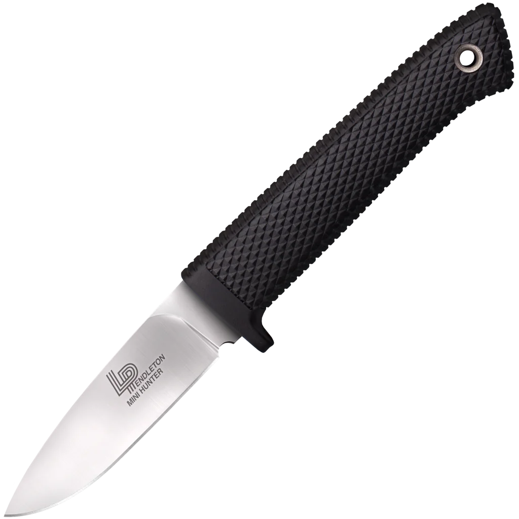 Lynn C. Thompson, bought the first knife that custom maker, Lloyd Pendleton ever made in 1973. The two went on to be fast friends, and together they collaborated on some of Cold Steels most popular and critically acclaimed bushcraft knives, the Pendleton Series. In fabricating these knives, Cold Steel has tried to duplicate Lloyd's work as accurately as possible. Both the Pendleton Hunter's hollow ground blade and the Mini Hunter's flat ground blade are honed to perfection. The handle's cross sections and contours match Lloyd's handmade knives exactly. The Mini Hunter comes complete with a tough, weather resistant SecureEx® sheath, which locks it safely in place, while remaining light enough to carry 24 hours a day. This material won't rot or mildew and is far more resistant to cuts or punctures than leather.