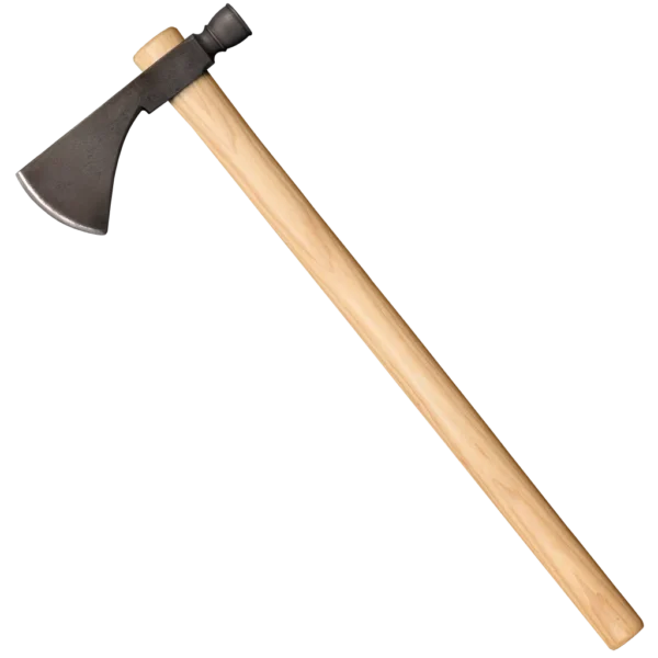Do you prize the look and authentic lines of a traditional Pipe Hawk, but have little use for the hollow bowl and the strength-compromised, drilled-out wooden "smoking" handle? Well here's a Pipe Hawk without those disadvantageous features. Precision forged from 1055 carbon steel, the Pipe Hawk offers a long, reasonably wide cutting edge and a solid, fully hardened hammer poll that's turned and ribbed to mimic a hollow pipe bowl. Fitted with a 22" hickory handle and weighing approximately 26 ounces it's heavy enough to be effective as a chopping tool plus its solid bowl will drive nails, spikes and stakes with the power of a framing hammer.