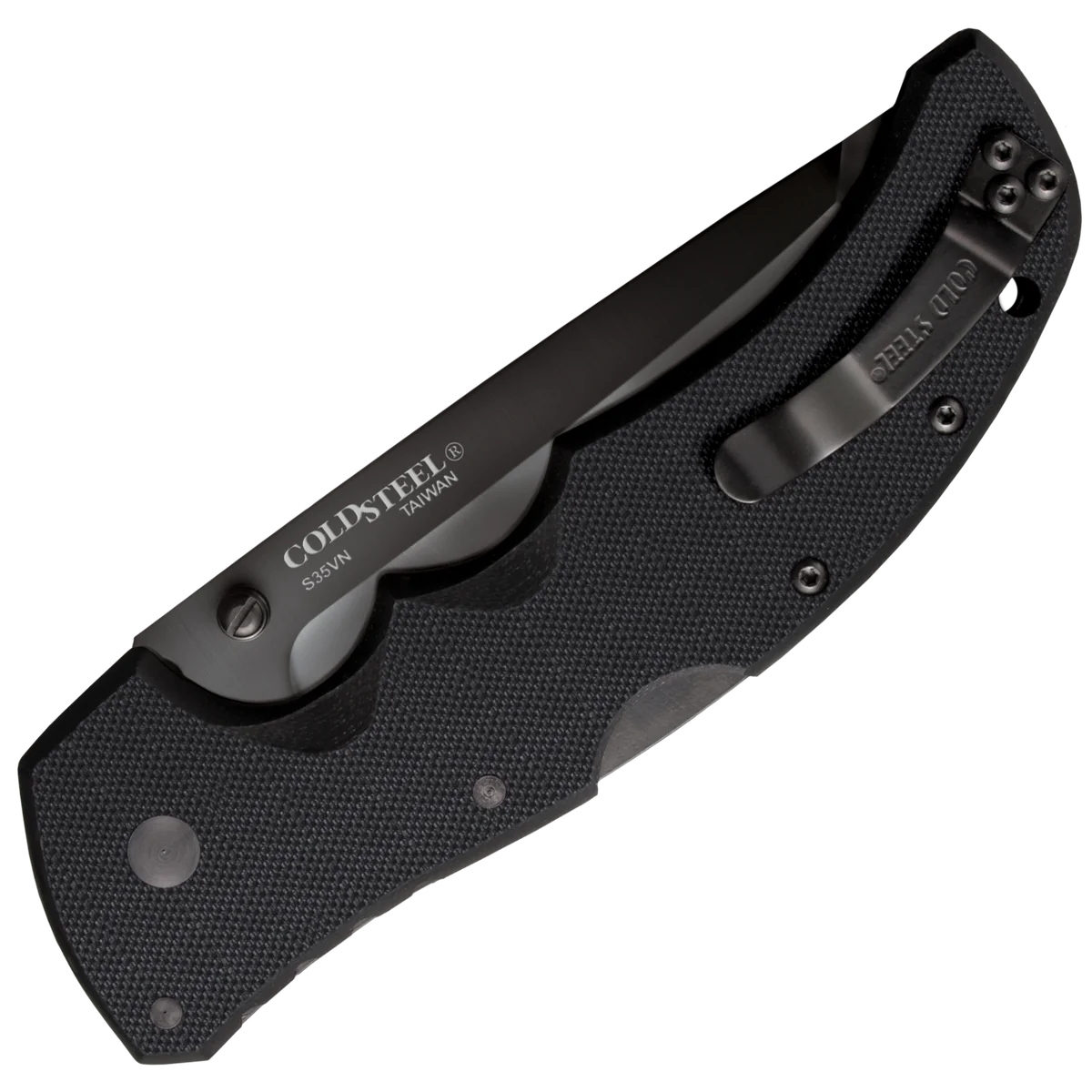 - Folding knife made from S35VN stainless steel with a DLC coating in a tanto style. Black textured G10 handles with a reversible pocket clip and lanyard hole, uses cold steel's tri-ad locking mechanism.