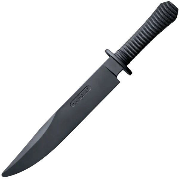 Now you can practice with some of our most popular knife designs, in relative safety, with our new rubber training knives. We have rubber training versions of our Peace Keeper™ I, the R1 Military Classic, Recon Tanto, Leatherneck-Sf, Laredo Bowie, Black Bear Classic and the Trench Knife Trainer. Each has been carefully fashioned to look as realistic as possible so they can be effectively used in solo practice, training drills, disarm drills, demonstrations and any other activity where you want a reasonably close approximation of realism but not the extreme danger and risk associated with an actual knife. The Santoprene rubber blades are soft enough to prevent the likelihood of most bodily injury. They do however, have a level of firmness that might cause injury to the face or the eyes, so it is recommended that appropriate eye protection or a fencing mask is utilized at all times when using a Cold Steel® rubber training knife.