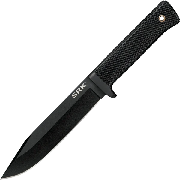 The Cold Steel SRK (Survival Rescue Knife) was built with one aim in mind, to produce the toughest multi-purpose survival tool in the industry. A knife you can truly trust with your life! This practical and tactical fixed blade was immediately embraced by the Military and Special Forces community – and issued by the Navy SEALs for BUDS training – who appreciated the SRK's versatility and durability in even the worst conditions. This classic design is now available with SK-5 high carbon steel. It is the Japanese equivalent of American 1080, a high carbon steel with carbon between 0.75%-0.85% and 0.60%-0.90% manganese. As quenched, it has a hardness near Rc 65 and produces a mixture of carbon rich martensite with some small undissolved carbides. The excess carbide increases abrasion resistance and allows the steel to achieve an ideal balance of very good blade toughness with superior edge holding ability.