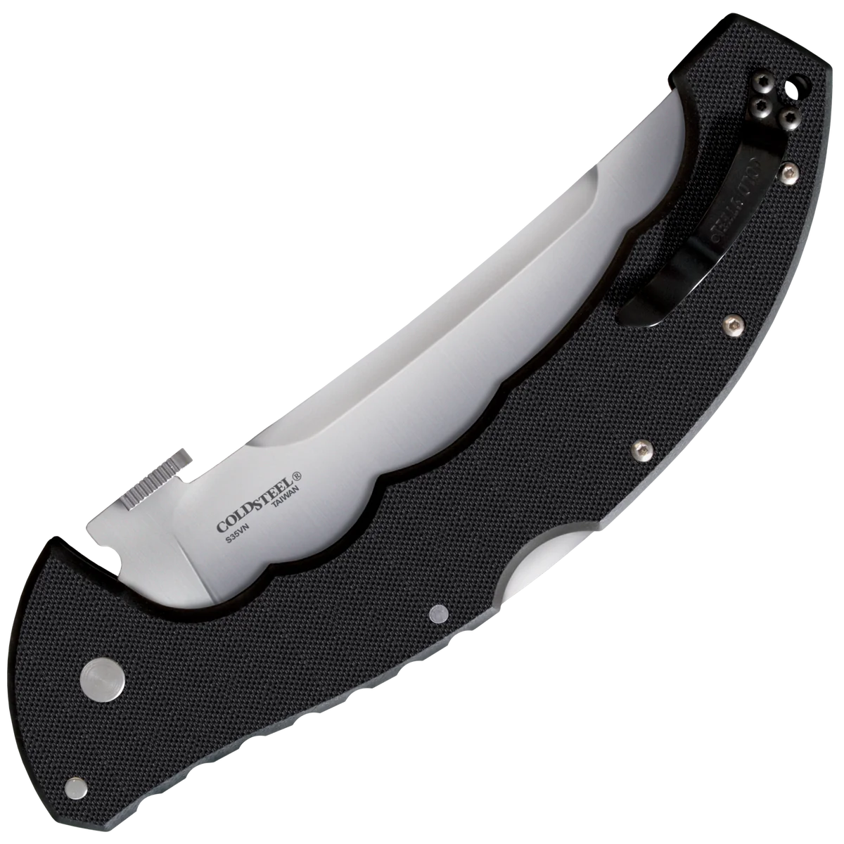 A design collaboration between Lynn C. Thompson and Andrew Demko, the Talwar packs an astonishing amount of cutting power into a thin and lightweight pocket knife. The Talwar folder boasts one of the widest blades available in the industry today. Made from S35VNsteel, and almost 2" wide, the blade is beautifully flat ground, with a continuously curved edge, offering cutting potential that has been previously unavailable in a folding knife. The Talwar’s textured, ergonomic pistol grip handle is made from premium G-10, with strategically placed integrated finger grooves for both comfort and safety. For added safety, each of our Talwar knives has our Tri-Ad® locking system; which has proven itself again and again to be the safest lock in the industry. The Talwar also comes equipped with Andrew Demko's revolutionary ambidextrous thumb plate.