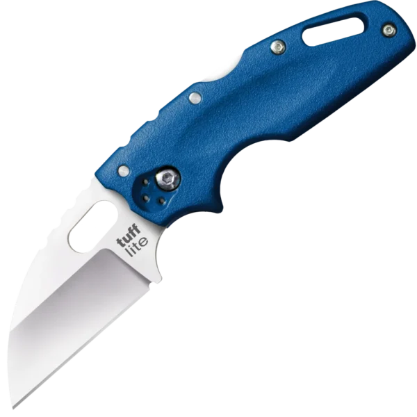 - Folding knife made from AUS-8A stainless steel with a satin finish in a wharncliffe style. Blue Griv-Ex handles with lanyard hole and pocket clip. Uses cold steel's secure Tri-Ad locking mechanism.