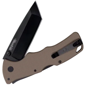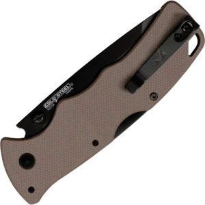 New from Cold Steel for 2022 – The Verdict AUS10A folding knife collection! Available in a variety of colours, blade styles and blade materials this versatile range utilises AUS10A Stainless Steel and texturised G-10 handles, topped off with Cold Steels famous Tri-Ad Lock! This model features a 3" Tanto blade in a black DLC finish for a more tactical look. Black coating not only protects the blade from wear and tear but reduces glare and reflections. The handle is constructed from G-10 in Cold Steel favourite – "Flat Dark Earth" while the textured finish and contouring guides the hand into place for a superior grip that won't let you down, even in wet conditions. The knife is finished with an ambidextrous thumb stud for quick and easy deployment and a black pocket clip.