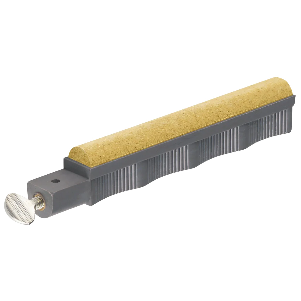 • The sharpening stone has a medium grit and is intended to maintain a sharp blade.