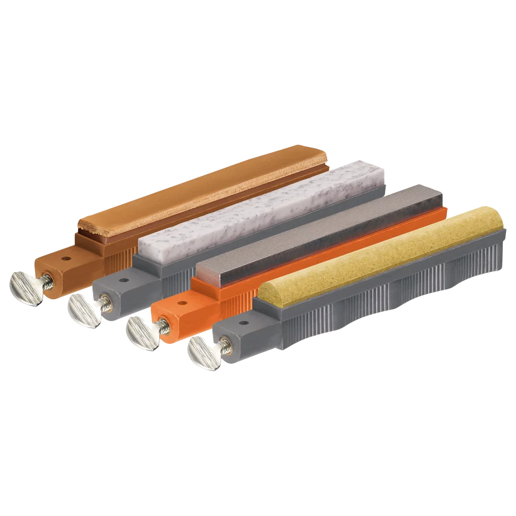 Replace the most widely used hones in your kit, while getting a taste for different varieties of abrasives at an amazing value! Includes: Leather Stropping – For unparalleled polishing. Soft Arkansas (200-350 grit) – A natural whetstone great for regular knife maintenance. Medium Diamond (280 grit) – Sharpens the fastest, even on the hardest steels. Medium Curved (280 grit) – For inwardly curved blades such as a karambit.